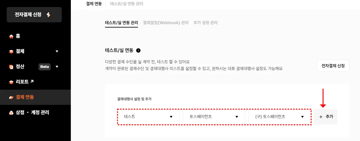 토스페이먼츠 테스트 모드의 경우 실제 출금처리 되지 않습니다.