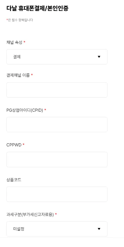 PG상점아이디(CPID) : 다날로부터 발급받으신 상점아이디(CPID)