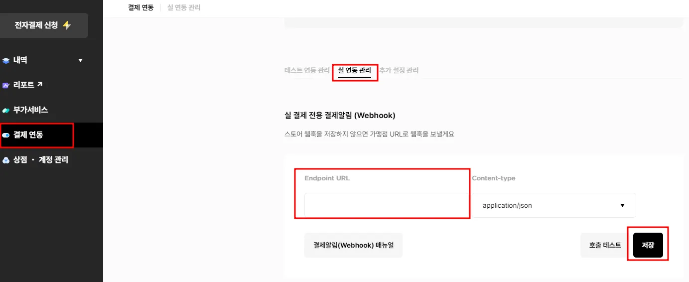- 설정 방법 : 아임포트 관리자콘솔( https://admin.iamport.kr ) →결제연동 → 실 연동 관리 → 실 결제 전용 결제알림 (Webhook)을 통해 통지를 받습니다.