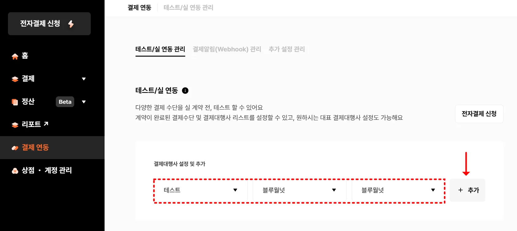 카드사 심사 완료 후에는 블루월넛에서 발급받은 실상점 정보로 설정 해야 합니다.