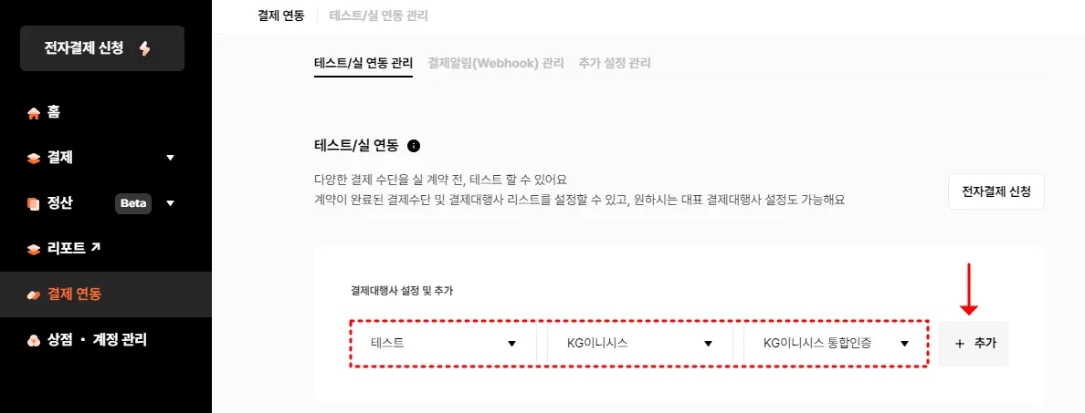 카드사 심사 완료 후에는 PG사 에서 발급받은 실상점 정보로 설정 해야 합니다.