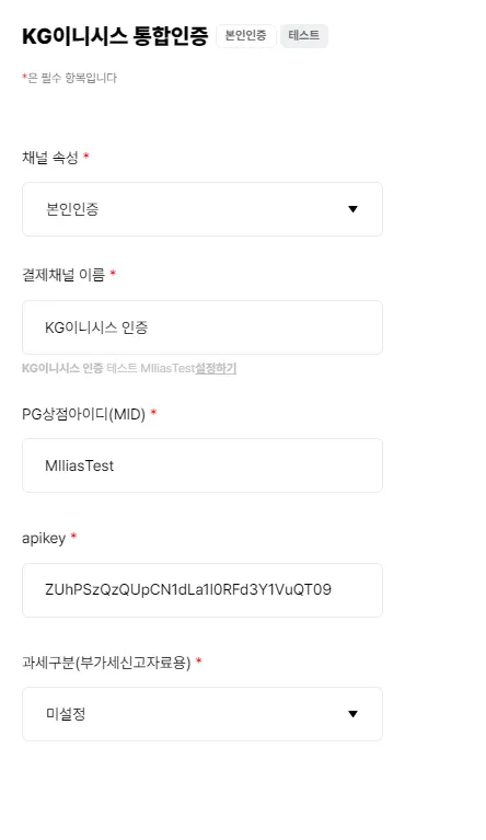 PG상점아이디(상점아이디) : MIIiasTest
