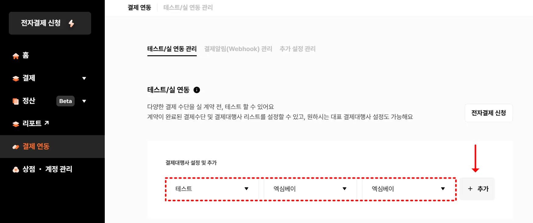 엑심베이 테스트 모드의 경우 결제시 실제 출금이 이루어지지 않습니다.