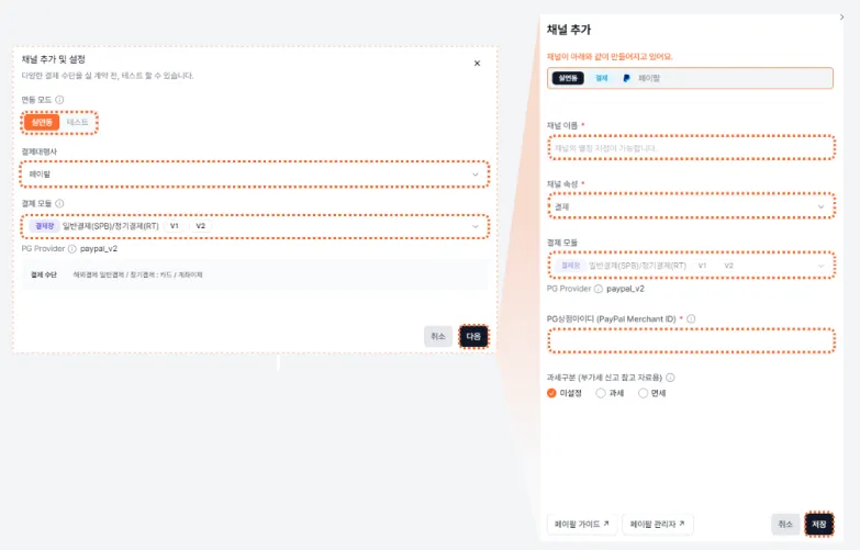 ”페이팔 SPB(일반결제)”와 “페이팔 RT(정기결제)” 모두 이용하시는 경우,