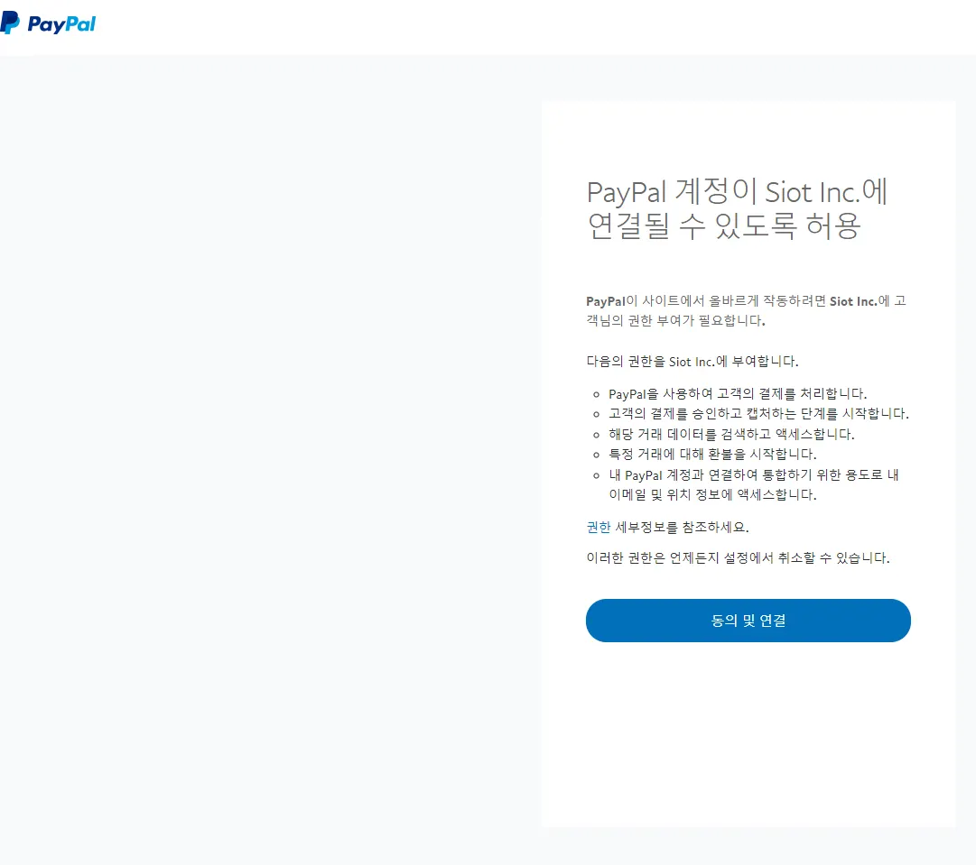 2) 페이팔 홈페이지를 통한 추가 가입(동의) 진행 (