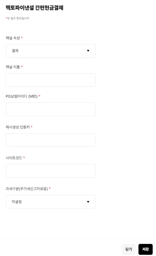 상점아이디(MID) : 기재 후 헥토파이낸셜측으로 요청바랍니다.